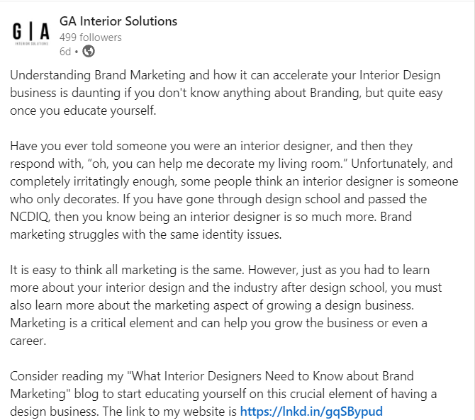 LinkedIn doesn’t like its users getting away from their site and landing on other websites drawing away from their ad spend. Your post will have a higher promotional value if it has some exciting text content directly on the platform versus just the title of a blog and “learn more.” Using this strategy, you will build the trust of your clients.